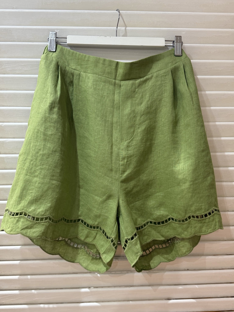 Our Blanche Linen Short feature a gorgeous scallop lace trim at the hem. Neat and tidy front with elastic through the back waist band.