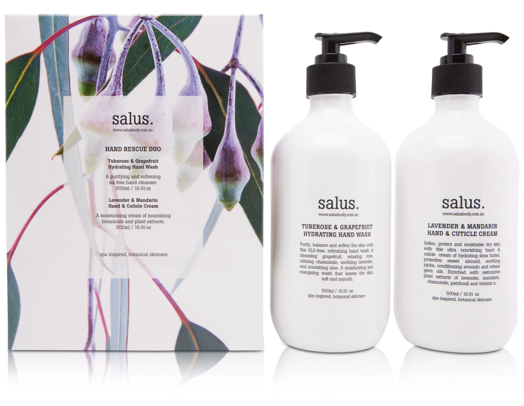 A cleansing and moisturising maintenance set to replenish and nourish dull or dry skin. With intense healing and moisturising properties this home spa kit includes a sls free Tuberose & Grapefruit Hydrating Hand Wash and Lavender & Mandarin Hand & Cuticle Cream with restorative plant extracts.