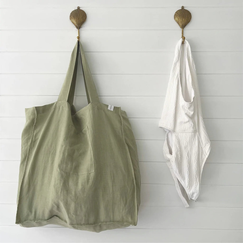This divine linen tote bag was lovingly designed and made with extra long weekends in mind. It is of a medium weight and includes an external pocket for extra storage. It also features long linen straps that go over the shoulder, making it comfortable to carry, and as an added bonus, it is lightweight so when not in use it can be easily folded away.