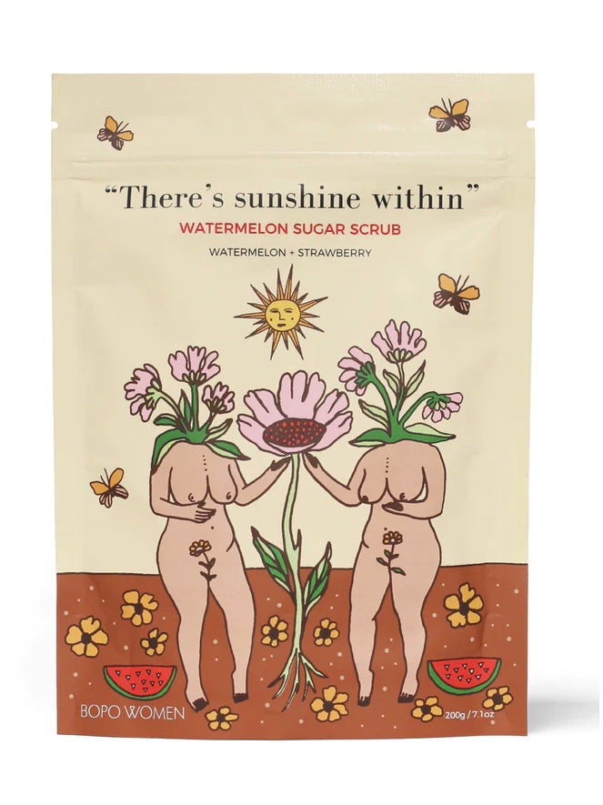 The Watermelon Sugar Scrub is a refreshing nutrient rich super scrub to help you kickstart the day. Skin healing superfoods like watermelon oil, strawberry powder and azuki beans are blended with a soothing natural exfoliant base to leave your body feeling deeply moisturised and smelling like a dream, long after you use it. We've tried all the body scrubs out there - coffee scrubs, sugar scrubs, salt scrubs and everything in between. But none delivered the perfect level of skin exfoliation; some were too soft and others were scratchy and damaged our skin. So we created a unique exfoliating formula that combines sugar, Himalayan sea salt, Pacific sea salt, coconut meal, almond meal and pink clay. We won't tell you it removes stretch marks or makes pigs fly, but if you want silky-soft, smooth and hydrated skin, then this scrub is perfect for you.